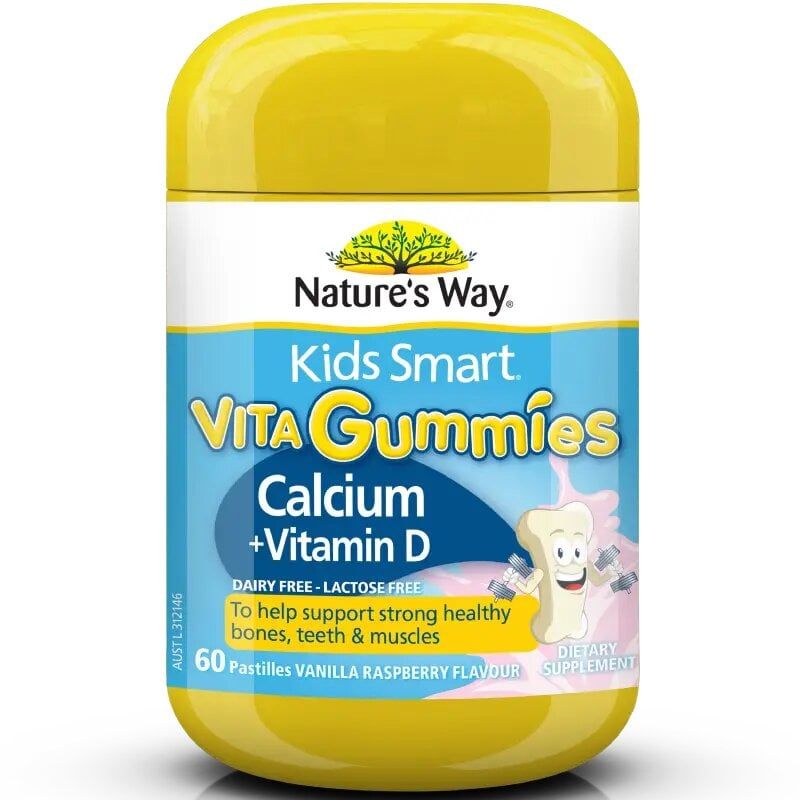 Hiểu được điều này, các chuyên gia hàng đầu tại Nature’s Way - Úc đã nghiên cứu ra sản phẩm kẹo canxi cho bé Nature's Way Kids Smart Vita Gummies Calcium + Vitamin D với sự kết hợp giữa hàm lượng Canxi (như Calcium Phosphate): 87.5mg và Cholecalciferol (vitamin D3 100IU): 2.5mcg tạo nên một sản phẩm hoàn hảo, giúp bổ sung Canxi bé.